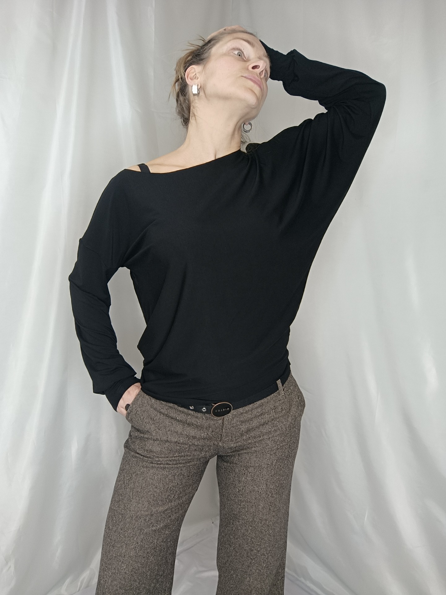 Pokud byste měly zájem koupit si oděv, který vám opticky zúží ramena, střihově i barevně mrkněte na můj sdílený eshop, (najdete tam i tohle asymetrické triko)